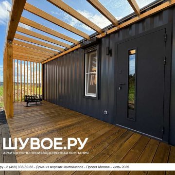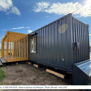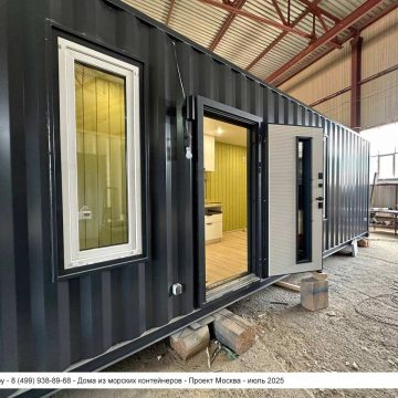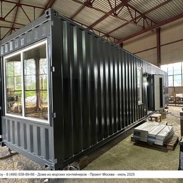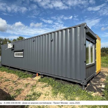 Дом из морского контейнера для круглогодичного использования. Основа модульного дома — 40 футовый (2,5х12 метров) морской контейнер увеличенной высоты.