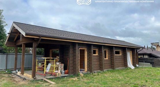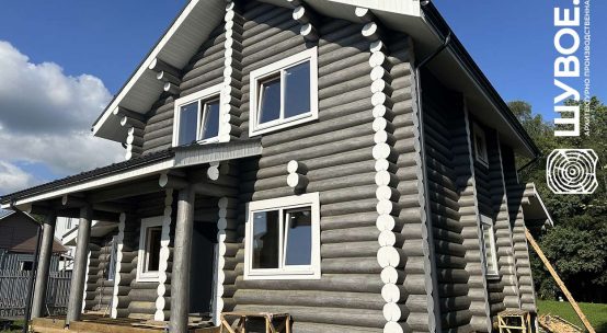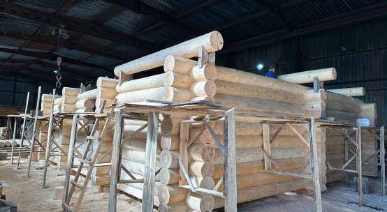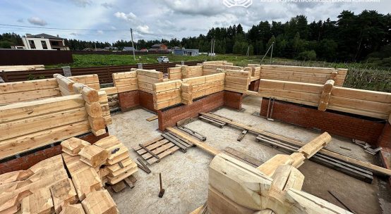 Завершено строительство сруба 6х6 в полтора этажа. Классический сруб построен из строганных вручную бревен среднего диаметра 26 см. Во время строительства были врезаны балки перекрытий между 1 и 2 этажами (брус 150х200 мм).