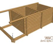 Строительство сруба бани 7*5 метров с выносами под открытую террасу. Фотографии рубки от укладки первого венца до готового сруба. Работа — февраль 2014, площадка компании Шувое.