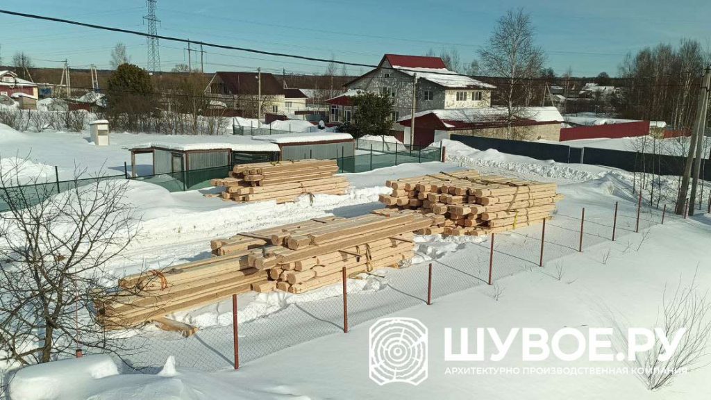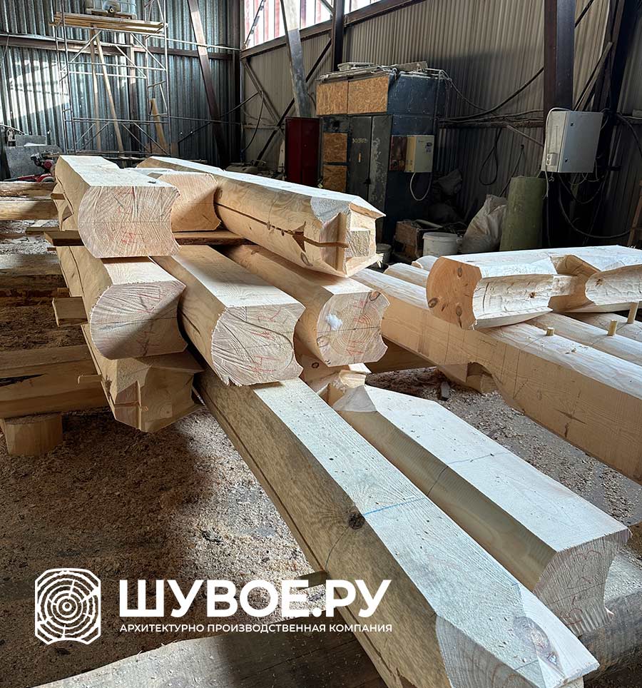 Готовый сруб из лафета на рубочной площадке Шувое.ру